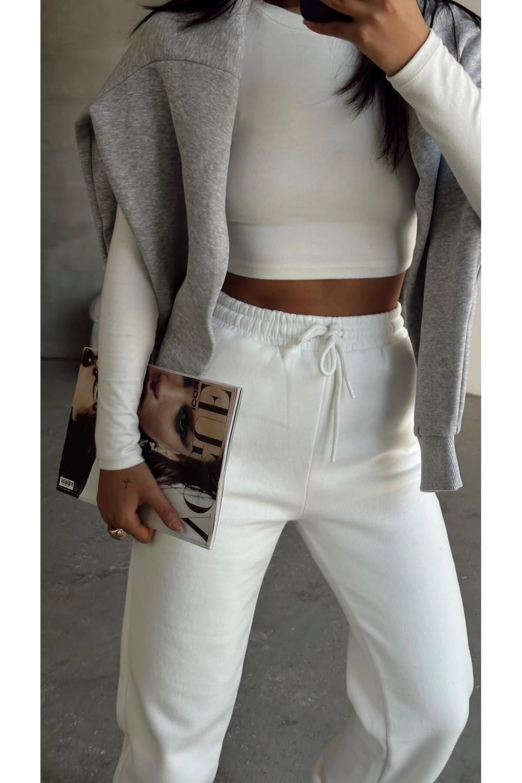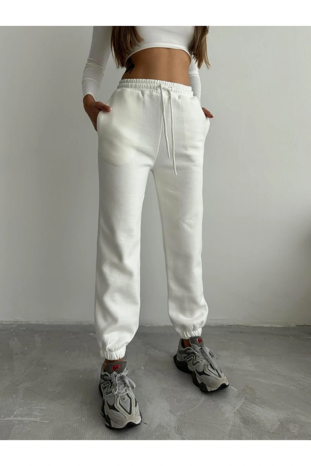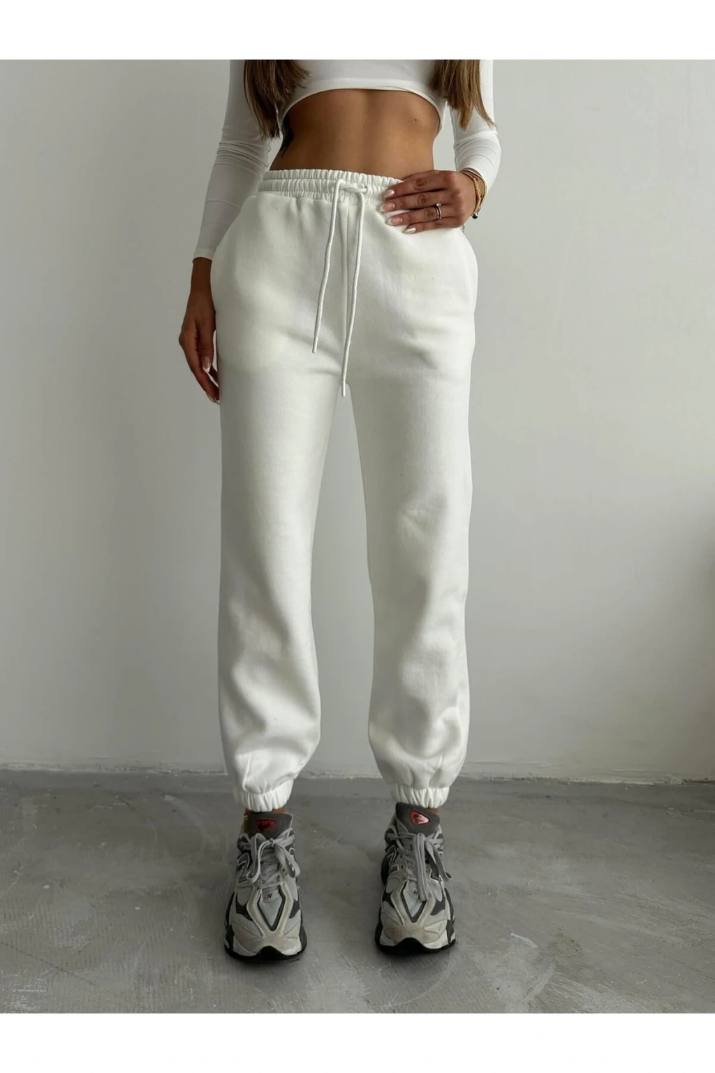 İnce iplikten üretilen şardonlu paça detayına sahip beyaz eşofman altı, spor giyim koleksiyonumuzun vazgeçilmez parçalarından biridir. Sade ve şık tasarımıyla günlük kullanıma uygun olan eşofman altı, konforunuzu ön planda tutar. Esnek lastikli yapısıyla rahat bir kullanım sunarken, üç iplikten oluşan kumaşıyla da dayanıklı bir yapıya sahiptir.