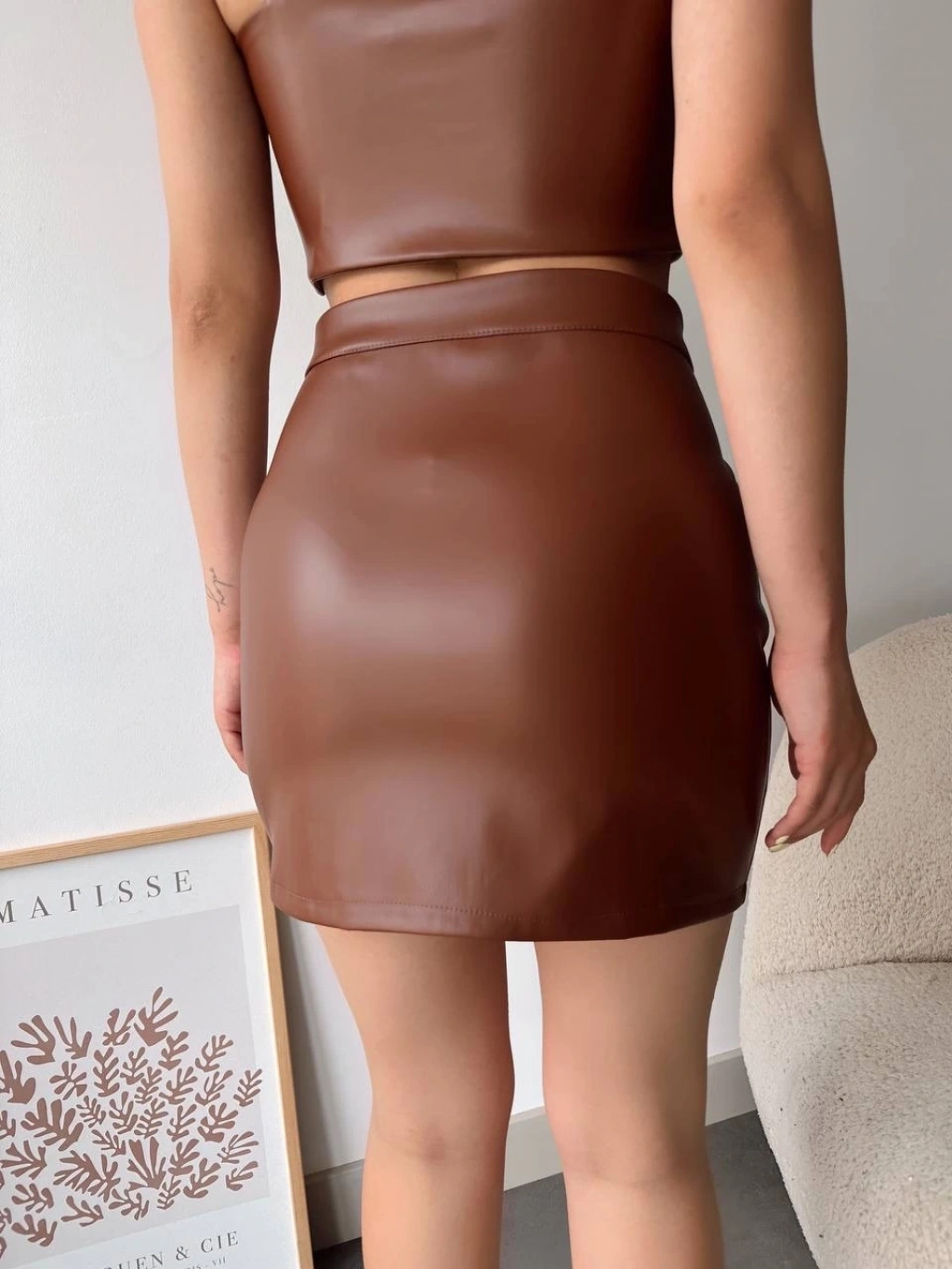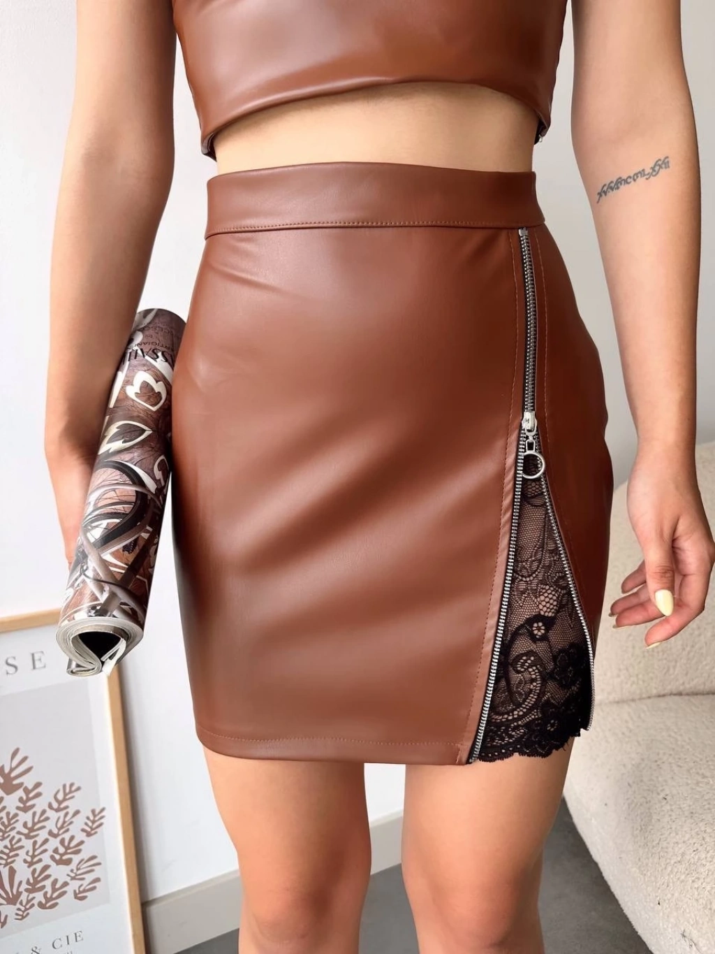 Şıklığı ve rahatlığı bir arada arayan kadınların favorisi olmaya aday Dantelli Fermuarlı Deri Etek'i hemen sepetinize ekleyin!