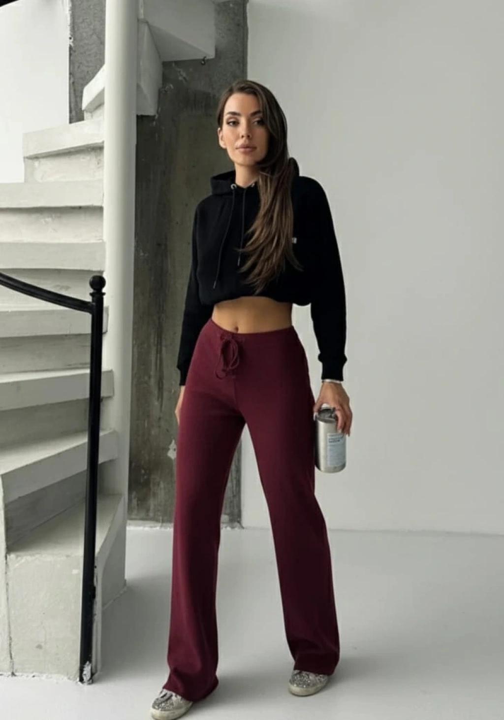Fit comfort bej salaş pantolon bordo A6011, tarzını ve rahatlığını bir arada arayan kadınlar için ideal bir seçenektir.